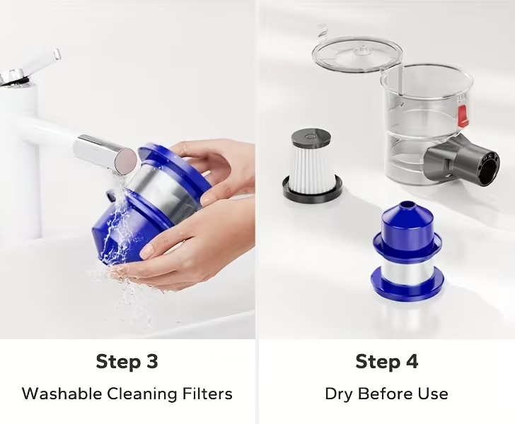• Powerful 5000Pa suction ideal for pet hair, debris, and daily messes