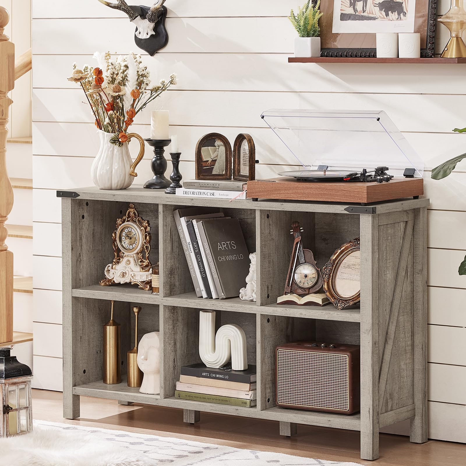 Bring both charm and practicality to your home with this 6-cube farmhouse-style bookcase. Featuring a deep navy finish with rustic wood accents, this low horizontal console shelving unit complements farmhouse, coastal, or transitional décor. Perfect for living rooms, hallways, or home offices, it offers generous storage while maintaining a sturdy and elegant design.