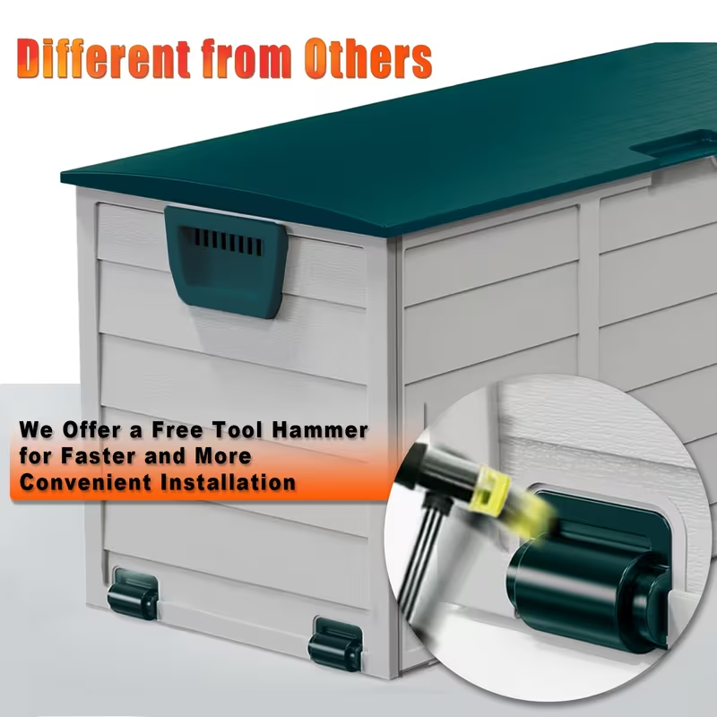 With a spacious rectangular design, this multipurpose storage box is perfect for storing pool accessories, patio cushions, garden tools, garage equipment, and more. Designed for quick and easy assembly, it offers a practical and durable storage solution for homes and outdoor spaces.
