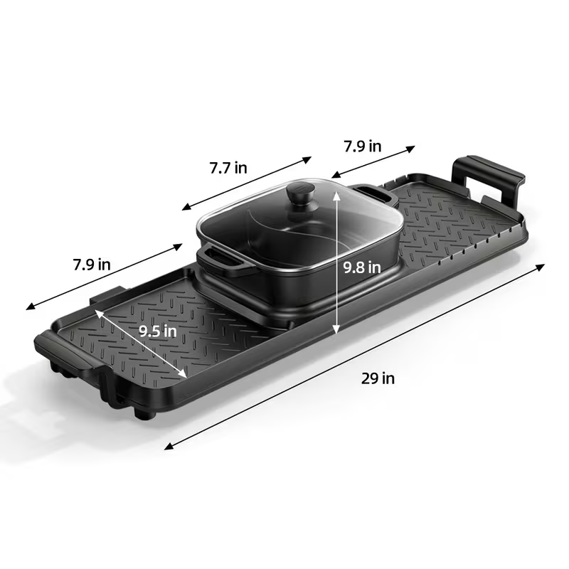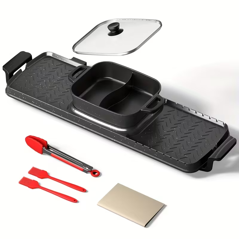 2-in-1 Hot Pot + Grill: Cook multiple dishes simultaneously—perfect for family-style dining.