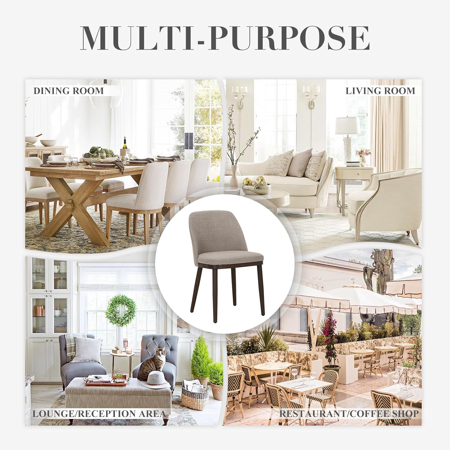 Stylish and Comfortable: Modern upholstered dining chairs with soft fabric padding and supportive backrest, perfect for long meals or gatherings.