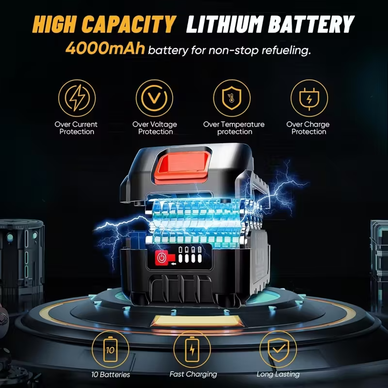 Cordless design with 21V DC 4.0Ah rechargeable battery