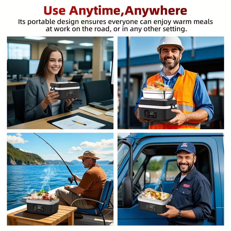 Enjoy hot meals anytime with this Cordless Electric Lunch Box for Adults, powered by a built-in 8000mAh rechargeable battery—no outlet required. The 60W fast-heating system warms your food quickly and keeps it hot, making it perfect for work, travel, or life on the go.