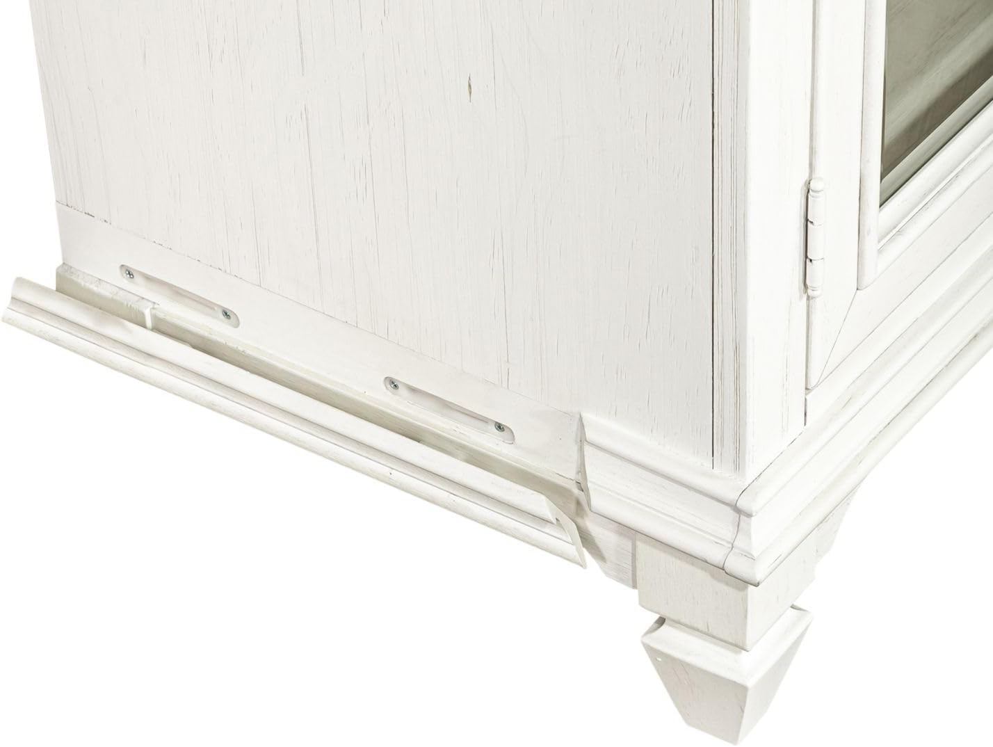 Bring a blend of timeless design and functional storage to your living space with this 72-inch TV stand. Crafted from solid wood with oak veneer tops, it features a wire-brushed white finish accented by charcoal tops, antique-inspired hardware, and beveled glass doors that allow remote signals to pass through seamlessly. Perfect for TVs up to 80 inches, this versatile console can be used as a standalone piece or combined with other furniture to complete your media setup.