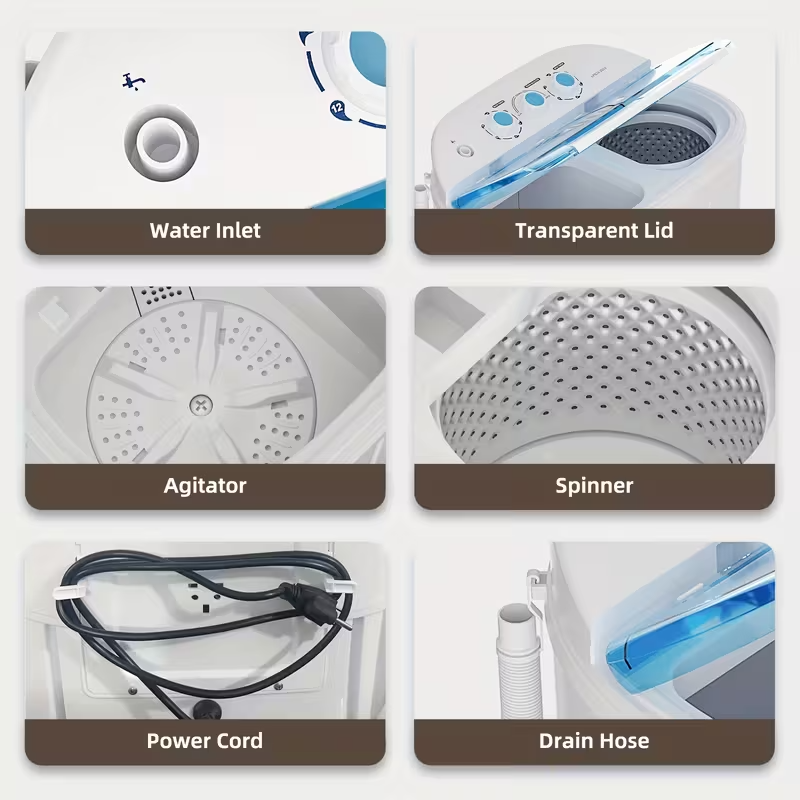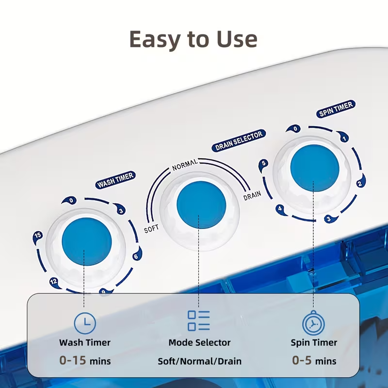 With a 13 lb total capacity (8.5 lb wash + 4.5 lb spin), it easily handles daily laundry needs for singles or small families. The compact, lightweight design makes it easy to move, store, and use in limited spaces.