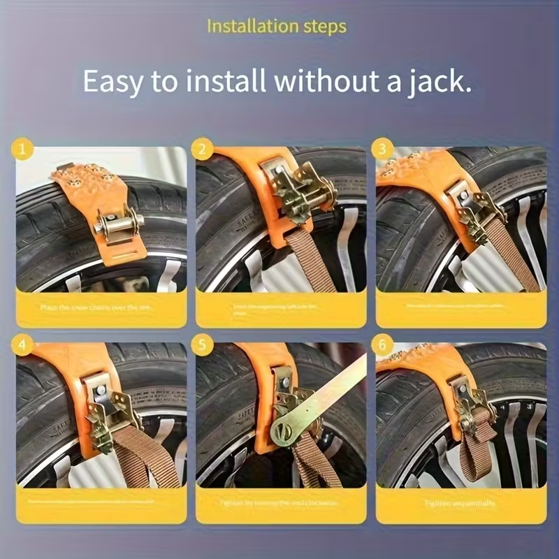 This 8PCS Universal TPU Snow Chain Set is designed to enhance traction and ensure safer driving in winter and challenging weather conditions. Made from durable Thermoplastic Polyurethane (TPU), the chains offer strong grip, flexibility, and long-lasting performance on snow, ice, mud, and wet roads.