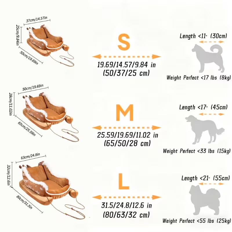 This Winter Warm Sled-Style Pet Bed offers a cozy and inviting resting space for small and medium-sized dogs and cats. Designed with a charming sled shape and soft brown and beige color tones, it brings both comfort and seasonal charm to your home. Made from durable polyester, the bed is thick, warm, and supportive, ensuring your pet feels safe and snug during colder months.
